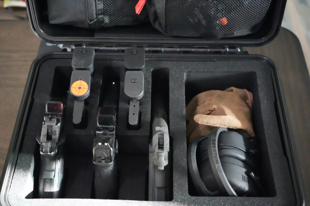 The pre-cut insert provides a firm, snug grip on the pistols. The optics don’t cause any issues either.